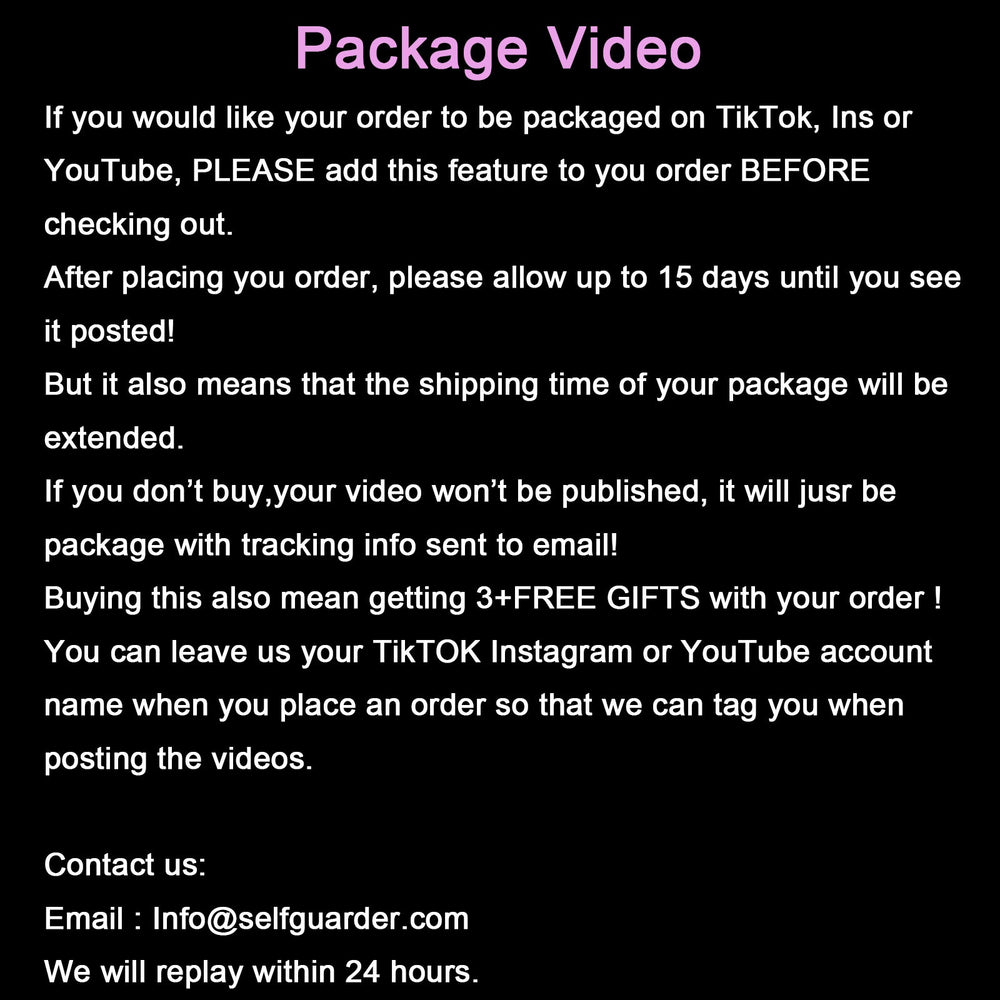 This is a service for girls who ordered , we will take a video of packing the order and post it on our TikTok, Instagram or YouTube . Please place an order with your other order. Separate orders cannot be shipped,You can leave your TikTok, Instagram or YouTube account name, we will @ you when posting videos.
